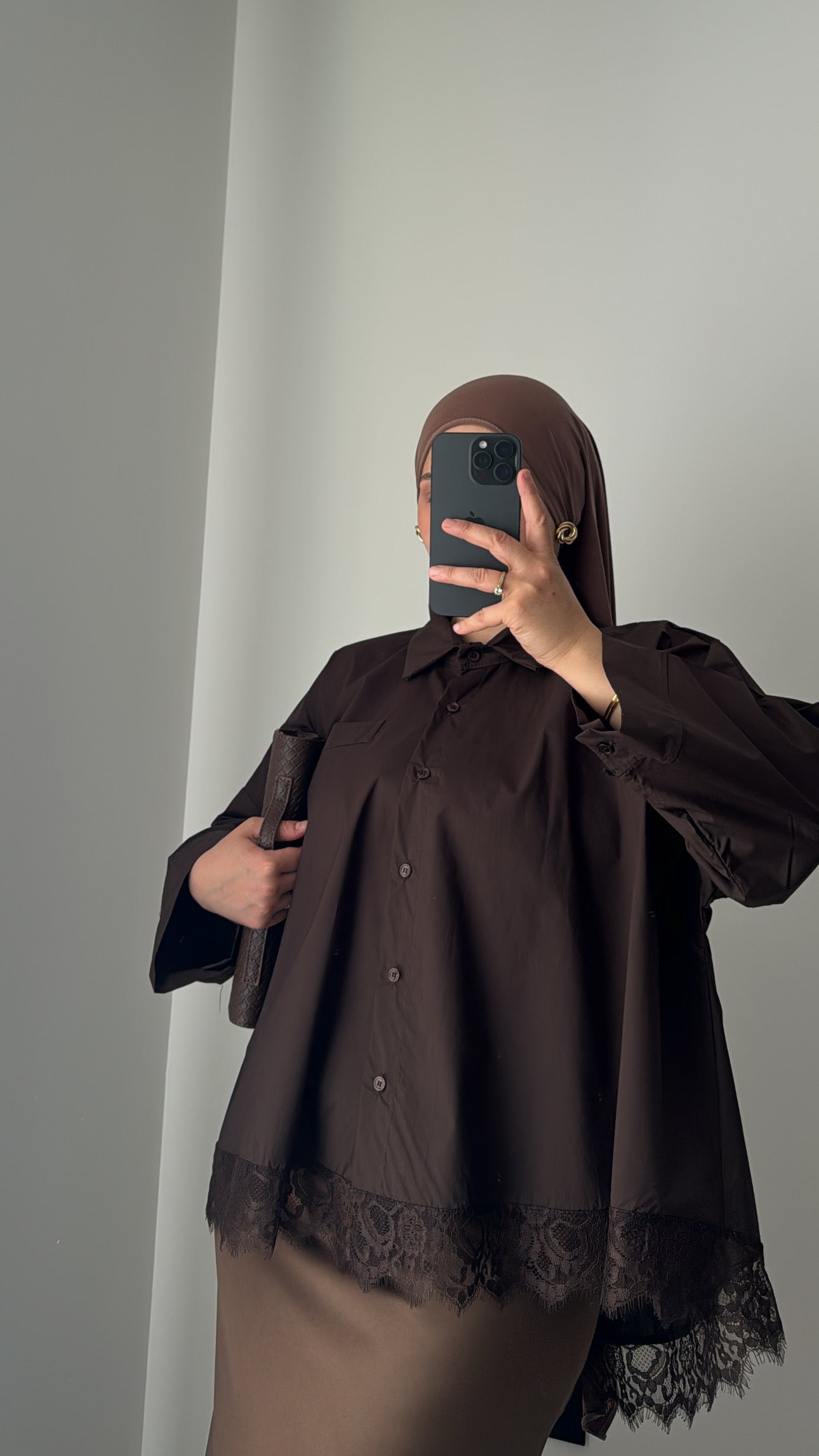 T-SHIRT MANCHES LONGUES DENTELLES - NOIR